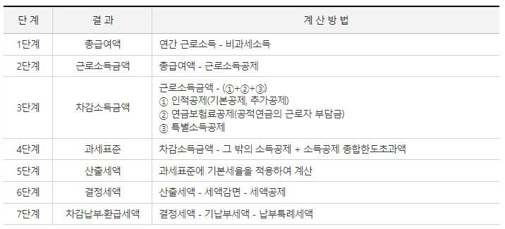 연말정산 : 급여소득에서 원천징수한 세액의 과부족을 연말에 정산하는 일