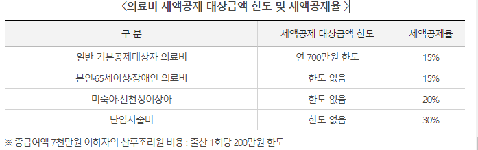 ※ 의료비 지출액 중 공제되지 않는 비용 : 실비보험 등으로 보전받은 금액, 외국 소재 의료기관에서 지출한 비용,